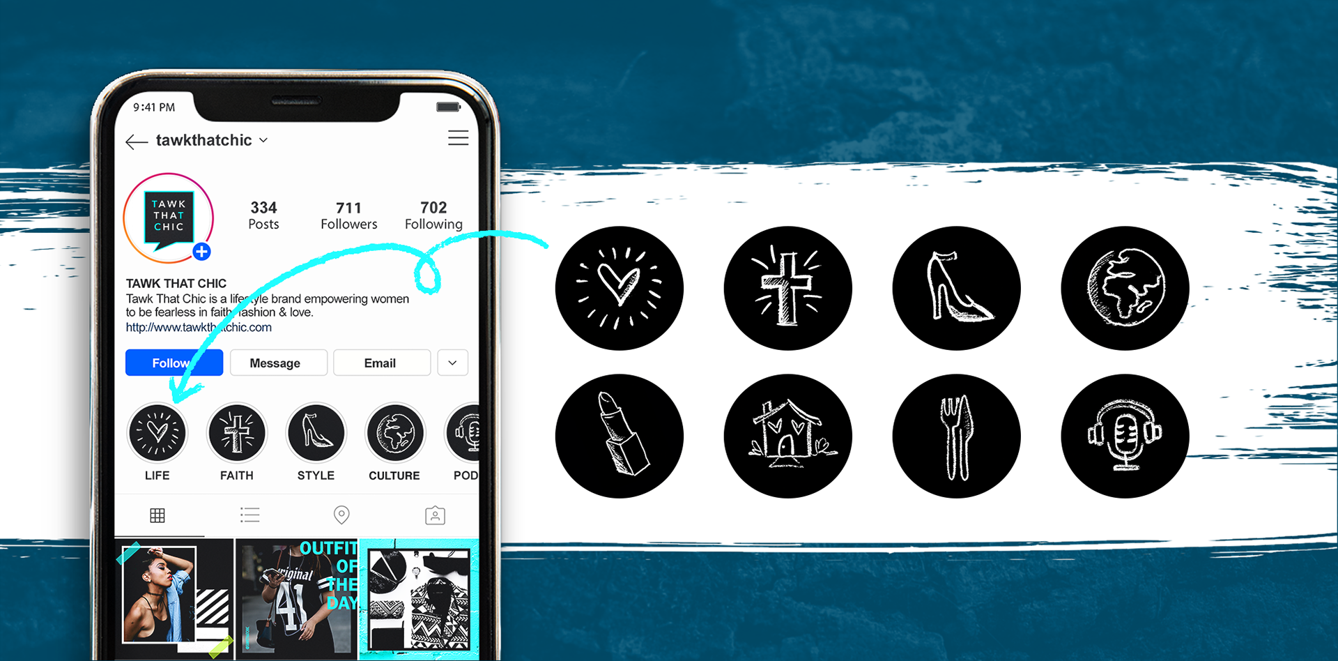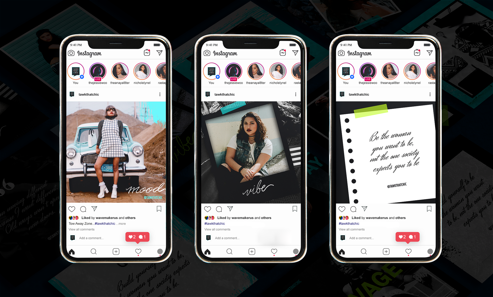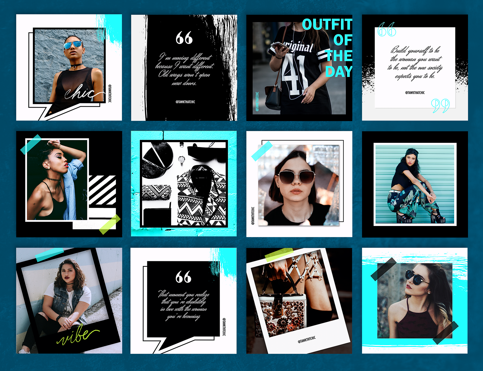 Branded Instagram template for TawkThatChic, a fashion and lifestyle blog.